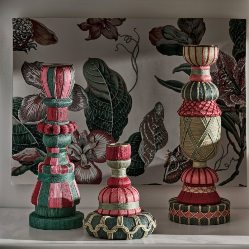 Perfect to boost the ambience of your home, the new candlesticks feature refined and rich details of passementerie. Pair it with others from the range, or simply style it alone as a stand-out piece to elegantly adorn tables and mantels.