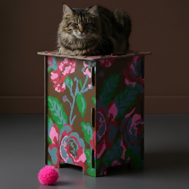 Stool, coffee table, footstool, or anything else you can think of! Versatile and simple to assemble and transport, this stool is supplied flat: easy and fun to assemble: it does not require any tools, glue or scissors. Recycled wood and non-toxic paints are used for production. Supports weights up to 1000 kg / 2000 lbs.
