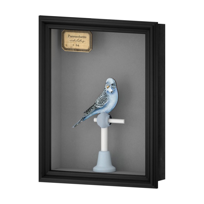 | Material | Wooden frame and perch - Mdf bird - Paper wings |