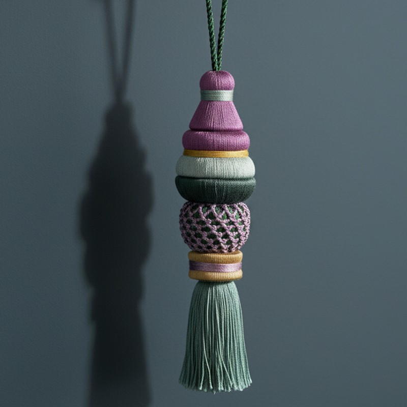 Unique and colorful passementerie details enrich this artisan tassel, perfect do decore any door, key or living space.