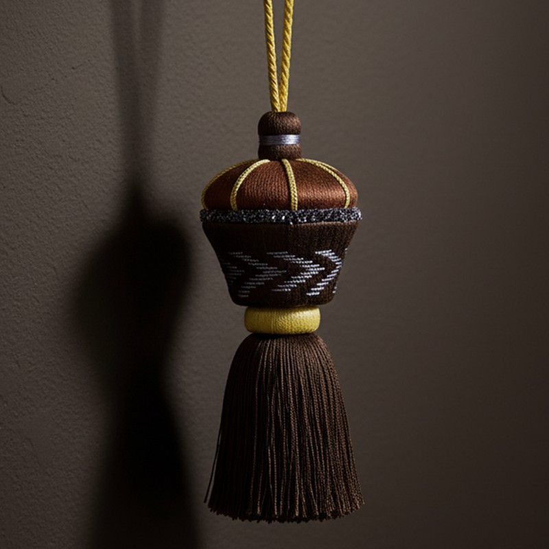 Unique and colorful passementerie details enrich this artisan tassel, perfect do decore any door, key or living space.