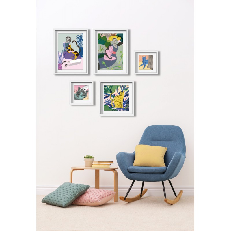 Nella collezione di stampe Miho Unexpected Things, il tema felino è interpretato secondo stili diversi ma in perfetta armonia tra loro: colori forti e contrastati convivono con toni pastello; forme grafiche e futuristiche coesistono con tratti morbidi e pittorici.